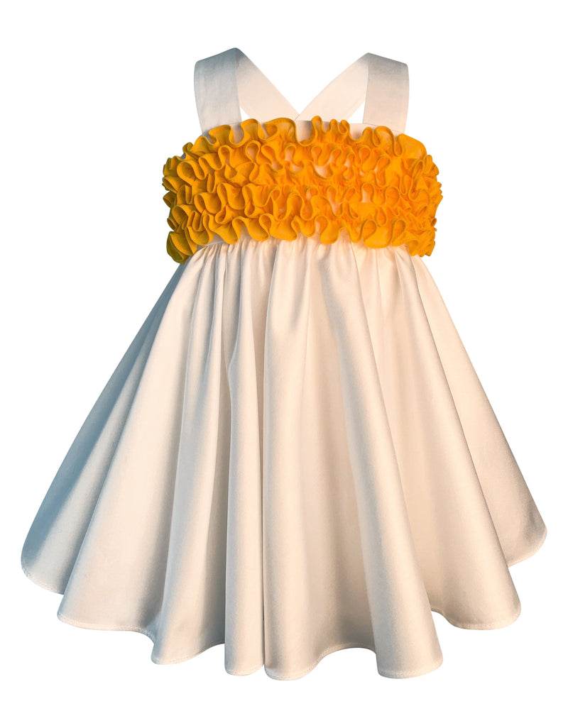HELENA Girl's White Sundress with Bright Yellow Ruffles