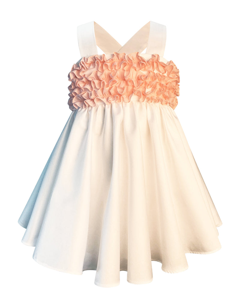 HELENA Girl's White Sundress with Blush Pink Ruffles