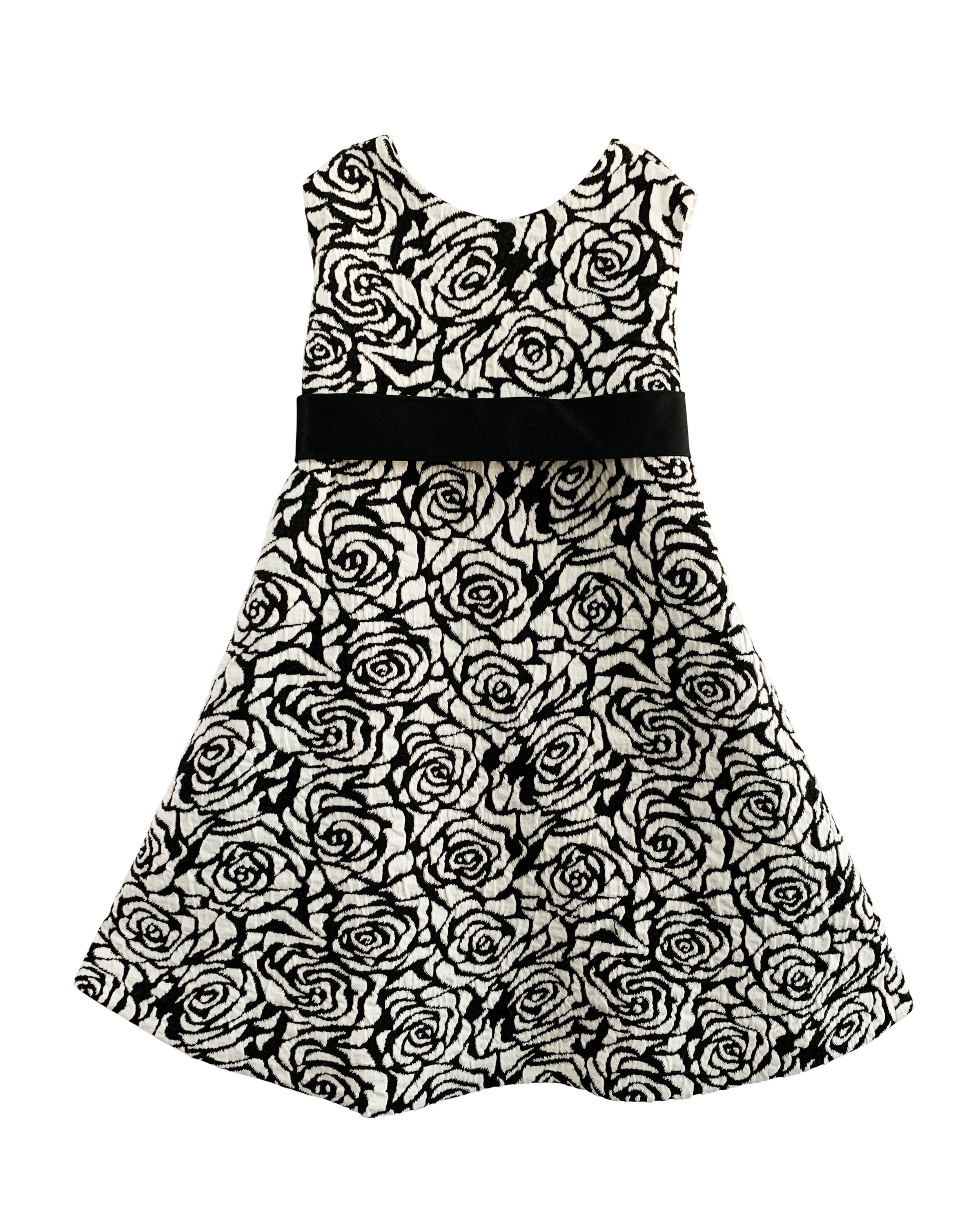Helena and Harry Girl's Black and Ivory Rose Knit Dress