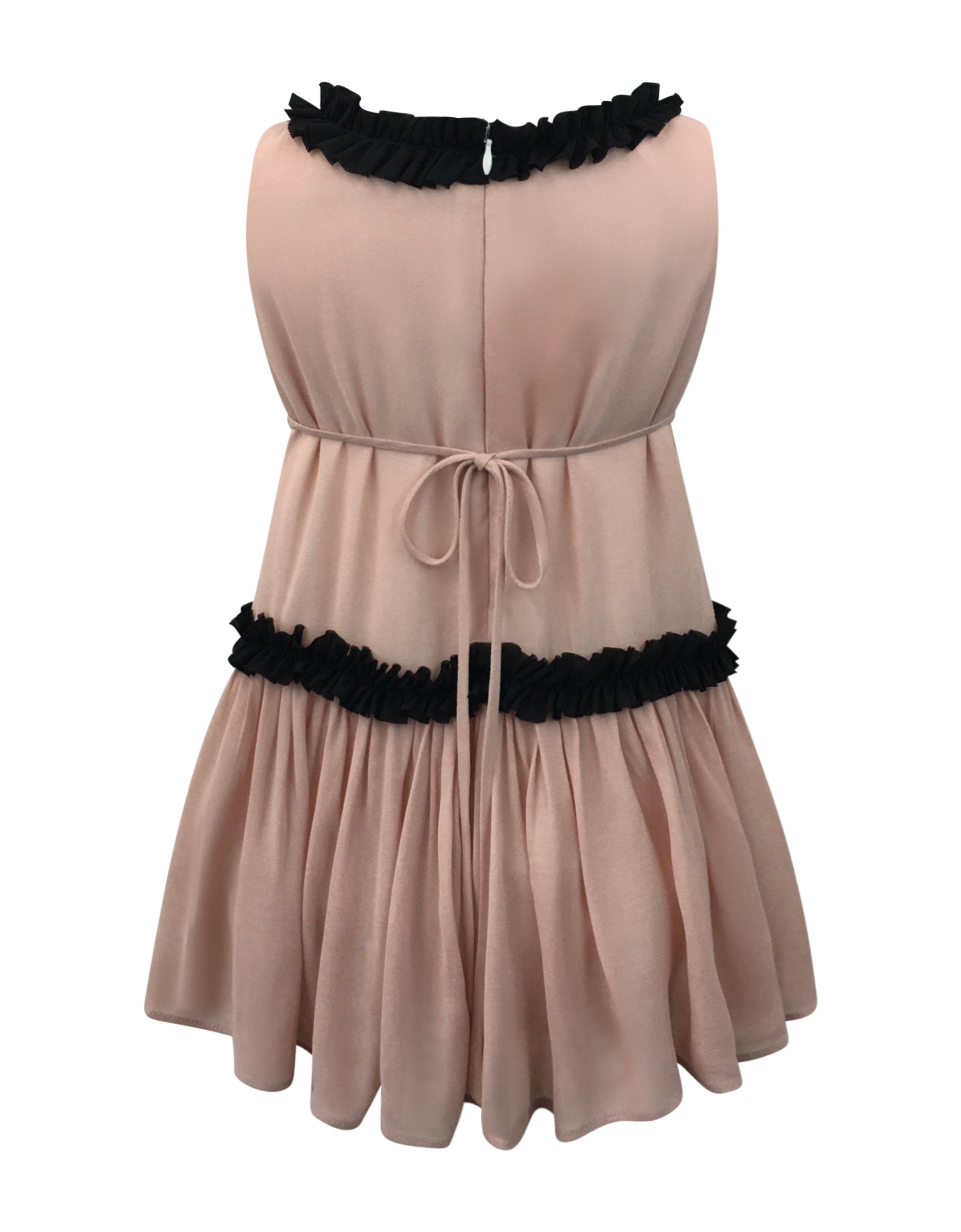 Helena and Harry Girl's Pink Georgette with Black Ruffles Dress